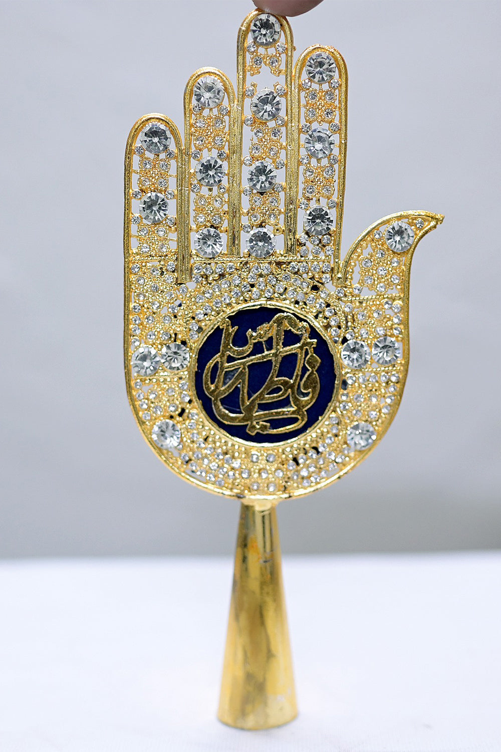 Embellished with brilliant white stones and detailed Islamic calligraphy